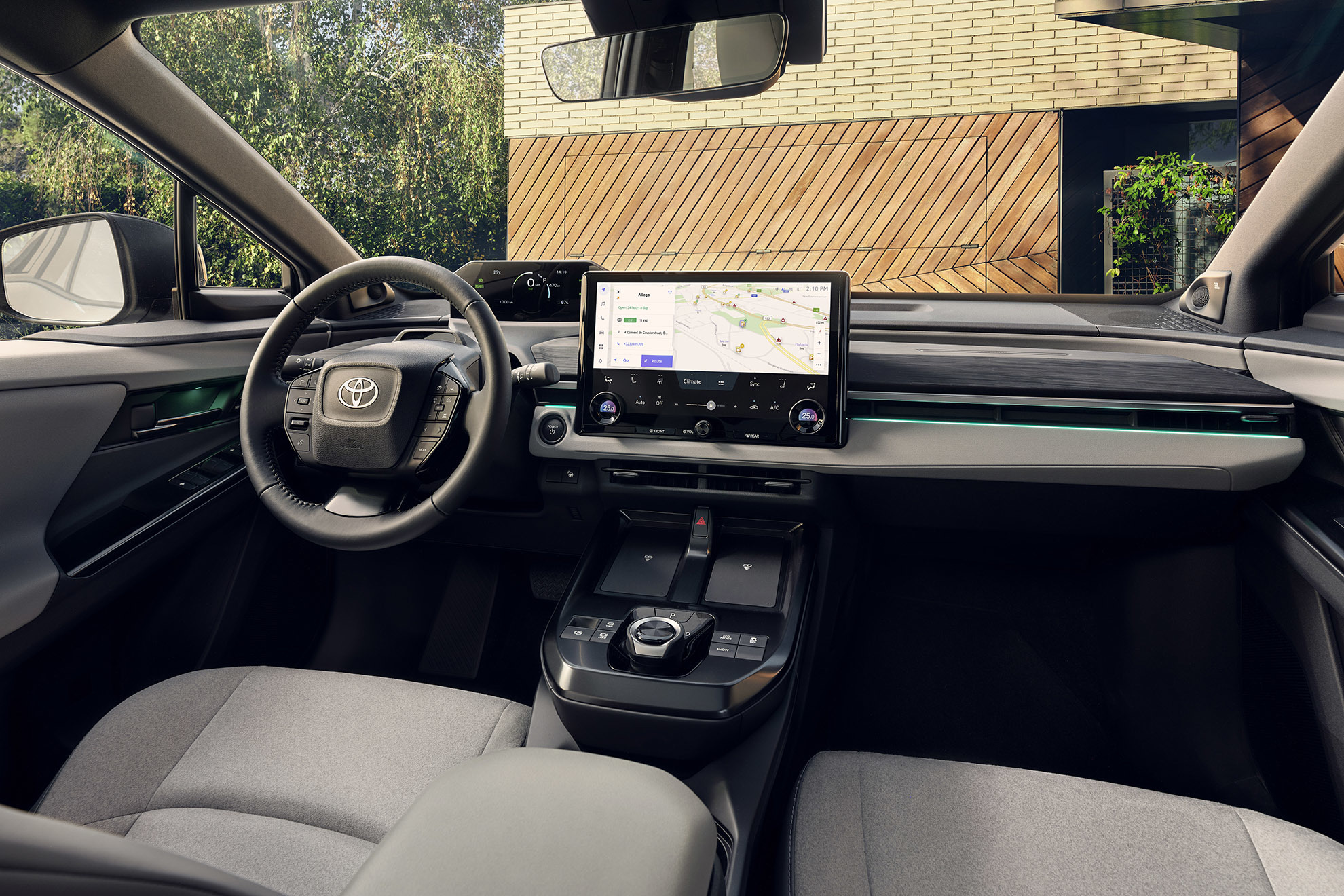 With a round steering wheel...Up front, Toyota hasn't lost sight of the driver, and the dashboard adopts a wraparound design that looks directly at them. The perceived quality is quite high, with soft, well-integrated materials, although the highlight is the round steering wheel. We say this because the driving position inherits the design of the bZ4X itself, and its luxury cousin, the Lexus RZ, integrates a rudder-style steering wheel.
